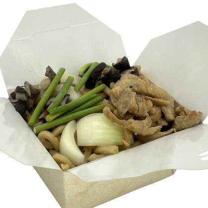 Кальмар, тигровая креветка, гребешок, лук репчатый, морковь, лапша пшеничная, соус устричный
