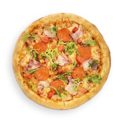 Увеличенное количество колбасок пепперони и сыра моцарелла, соус томатный
